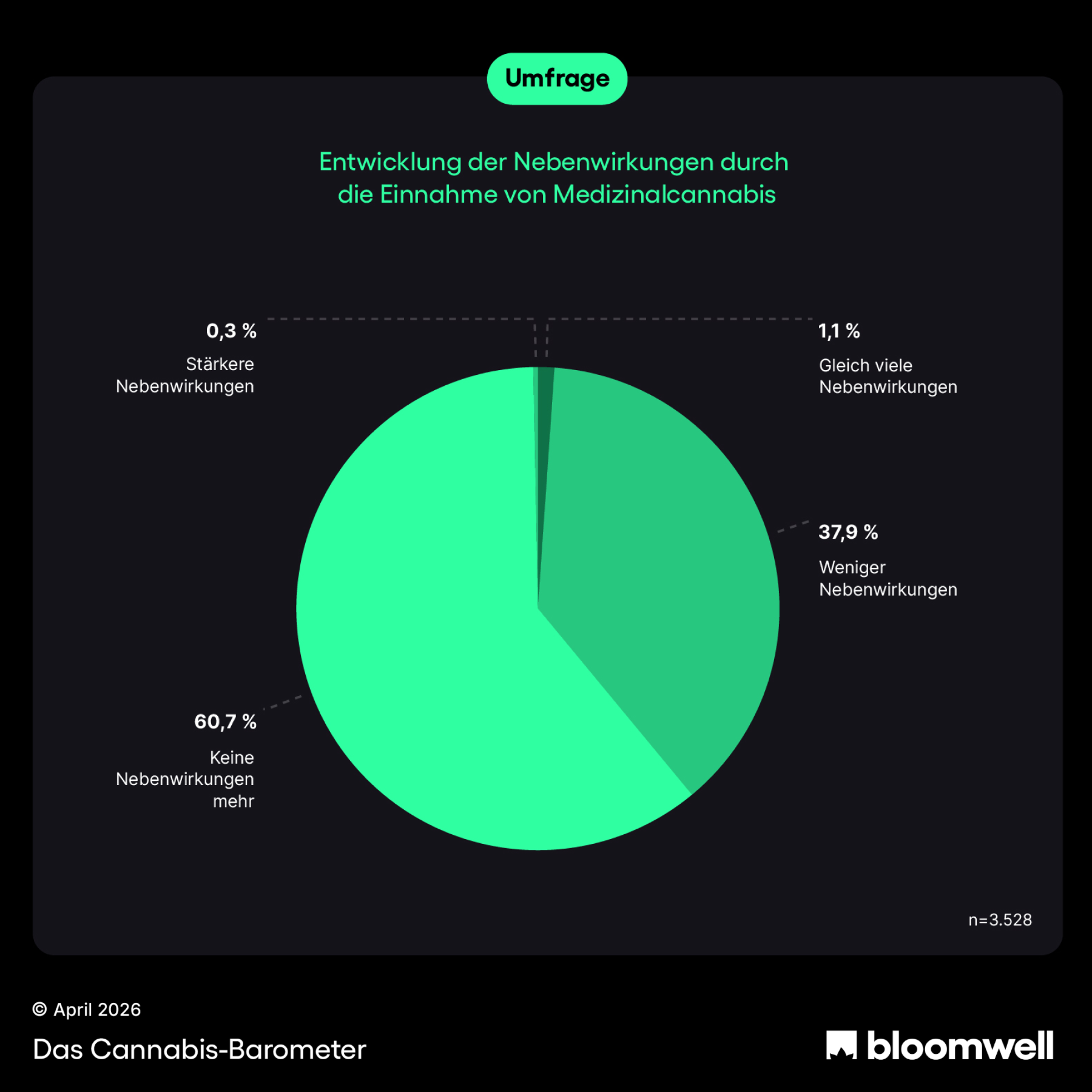 Vorurteile halten sich hartnäckig: Medizinalcannabis wird immer noch als „riskant“, „süchtig machend“ oder „nur für Schwerstkranke“ dargestellt. Die neue Umfrage unter 3.528 Patient:innen aus dem Cannabis Barometer Q1 2026 zeigt das genaue Gegenteil. Wer auf Medizinalcannabis umsteigt, kann andere verschreibungspflichtige Medikamente massiv reduzieren und spürt in den allermeisten Fällen deutlich weniger oder gar keine Nebenwirkungen mehr.